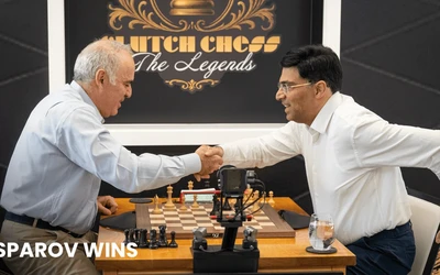 GM Garry Kasparov won against GM Vishy Anand in Game 3 of Clutch Chess: The Legends! Kasparov now leads the Chess960 match between the two legends by one point after the first day. Follow the remaining eight games in our broadcast until 10 October.